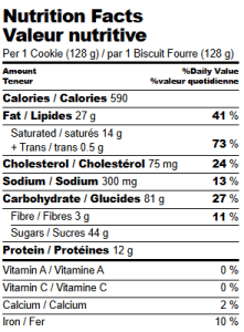Ingredients: Enriched all-purpose flour (wheat flour), Reese’s peanut butter cups, unsalted butter (cream), granulated sugar, mini Reese’s pieces, brown sugar, peanut butter chips, egg, milk chocolate chips, baking soda, pure vanilla extract.